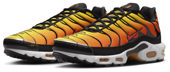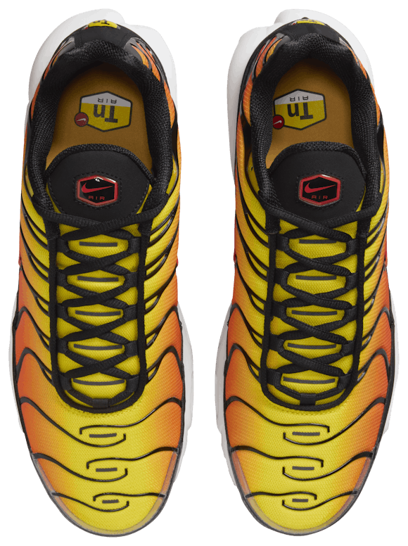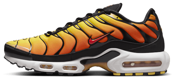 Trailblaze in style with the Nike TN ""Tiger."" This fiery edition features a high-temp color palette with sleek black accents that add a sizzling aesthetic to every step. The synthetic upper with lightweight mesh keeps things breezy and light, while the supportive midfoot arch draws design inspiration from a whale's tail to stabilize every stride. The wavy lines of the iconic plastic cage reflect palm trees and ocean waves, while the Max Air unit in the heel and forefoot deliver the familiar bounce. Stride with confidence in these Nike TNs.